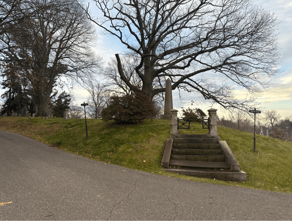 The plaque has been installed on Marko’s tree in Green-Wood. If you’d like to visit, get a map at the entrance and find the intersection of Vista Avenue and Forest Ridge (navigation apps usually work as well). The tree is the large red oak on the left side of the image below.